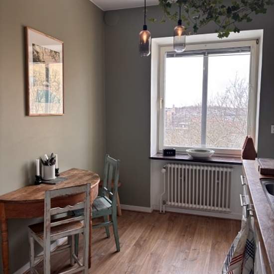 Welcome home to my fantastic three-room apartment! Here you live with a lovely view and afternoon and evening sun that fills the home with a soft, golden light. The apartment has warm, natural, and homely colors that create a calm and cozy feeling from the very first step inside the door. The area and the building are safe and child-friendly, located on a quiet cul-de-sac with no through traffic. At the same time you have the city's pulse close at hand, with only a few minutes to the center of Gothenburg. The tram and bus are a 5–7 minute ...
