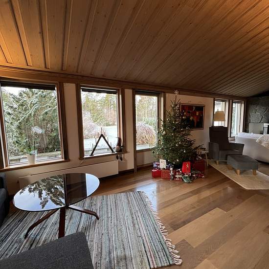 Eget hus med tennisplan, inomhuspool, bastu samt stor trädgård/gräsmatta. Fastigheten är omgiven av skog och grönområden. Nära Räggårdsviken – en populär badplats sommartid med fina klippor och vacker natur. Huset uthyres omöblerat. Nuvarande hyresgäst har endast delvis flyttat ut på bilderna. Det finns två ”riktiga” sovrum, men goda möjligheter att placera ytterligare två sängar på övre plan. Familj bestående av fem eller färre är optimalt. Tidigare hyresgäst var en familj på fem. Bil är ett måste då huset ligger en bit från kommunala t...