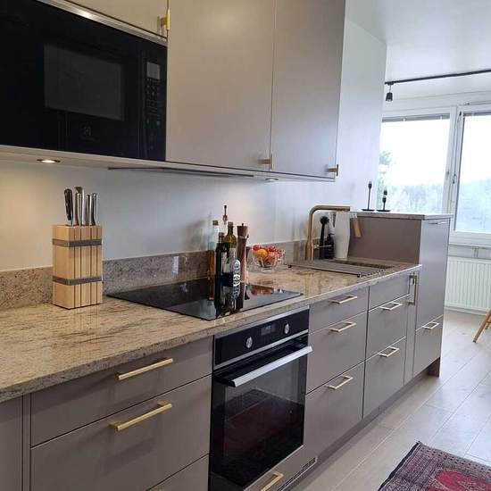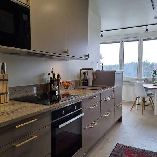 Möblerad 3:a på 79 kvm med fin Mälarutsikt uthyres Nu finns möjlighet att hyra en ljus och nyligen renoverad 3-rumslägenhet på 79 kvm med en fantastisk sydvästbalkong och fri utsikt över Mälaren. Läget är lugnt och naturnära, samtidigt som både tunnelbana och badplats finns på bara några minuters promenad – perfekt för er som vill ha både natur och stadens bekvämligheter nära till hands. Lägenheten har ett rymligt kök som är fullt utrustat med kyl, frys, spis, ugn, mikrovågsugn, vinkyl och diskmaskin. Intill köket finns en trevlig matplats...