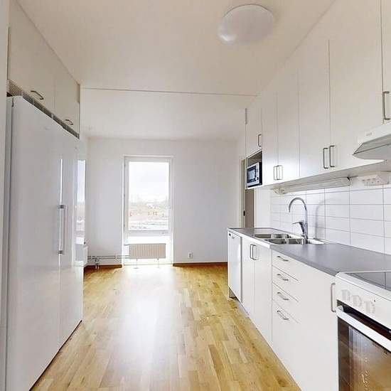 The apartment has a generous bathroom with a shower, washbasin, washbasin, washing machine and tumble dryer. The surfaces are finished with wall tiles and floor tiles. The living room has an open-plan layout with the kitchen and receives a lot of natural light. From the living room you access the balcony. The hallway contains the storage room, a walk-in closet and the entrance to the bathroom and bedroom. The finishes are white and bright and consist of painted walls, oak parquet, white kitchen cupboards and a gray laminate worktop. The ap...
