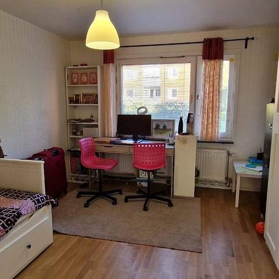 • First floor • Rooms: Living room, two bedrooms, and a hallway. • Kitchen: Recently renovated (last year) with modern appliances and ample space for dining. • Bathroom: Spacious and newly renovated. • Balcony: West-facing, perfect for some evening sun. • Parking: A parking space just 30 meters away, in the building association's (HSB) parking area (included in the rent). • Hot water and electricity: Not included in the rent. Charged based on usage. • Included: Wi-Fi and parking are included in the rent. Location Highlights: • Public...