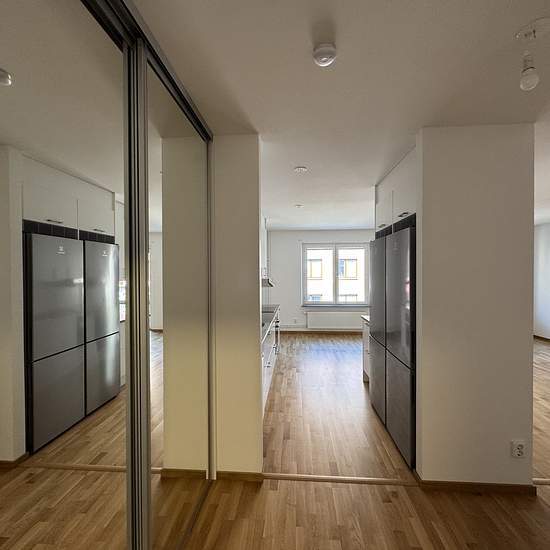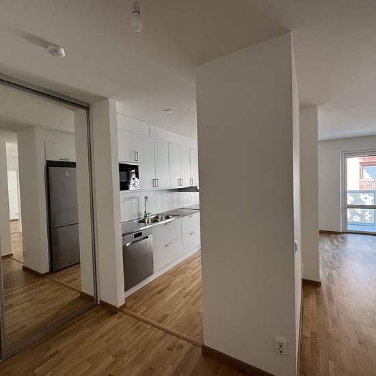 Välplanerad 3:a om 74 kvm på våning 2 med balkong om 5 kvm. Lägenheten erbjuder ljusa ytor, parkettgolv i ljus ek och ett stort, fräscht badrum med grått klinker, vitt kakel samt egen tvättutrustning i form av tvättmaskin och torktumlare. Köket har vita luckor med rostfria handtag, bänkskiva och stänkskydd i laminat, rostfri diskho samt diskmaskin och mikrovågsugn. Ett av sovrummen är utrustat med en rymlig klädkammare som ger utmärkt förvaring. Perfekt för dig som vill ha både stil och funktion i vardagen. Hyra: 17 515 kr/mån. I månadsav...