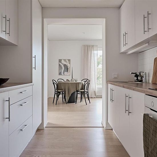 At Campus Träbyn, we offer bright corridors and shared apartments where you share the kitchen and bathroom with other students in a one-room apartment. The light intake provides nice lighting both in the kitchen and the hall, and the tones in the apartment are in light shades. To rent an entire shared apartment with your study friend or partner, email EMAIL. Good to know: • The residence is unfurnished. • There is built-in storage in the hall. • The kitchens are equipped with combined fridge/freezer, oven, and induction hob. • Heat and inter...