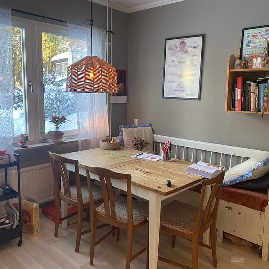Mysig trea med radhuskänsla på bottenplan. Stor uteplats med staket runt. Mysigt uterum med infravärme. Badrummet renoverades i december 25. Nytt golv lagt i köket november 25. Fri parkering för boende. Serviceavgift för hyresgäst: 470