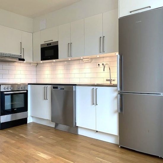Interiörbilderna är exempelbilder på standarden. Visning Är du intresserad av visning? Vi erbjuder visning även kvällar och helger. Anmäl dig här Just nu bjuder vi på en del av månadshyran för dig som är ny hyresgäst hos oss. Första året bjuder vi på 1.500kr/månad, andra året 750kr/månad. Ordinarie månadshyra är 10.650kr. Charmig 3:a på våning 2 Välkommen till denna lägenheten som helrenoverades år 2018 och har utsikt åt två håll. Lägenheten har genomgående ekparkett på golv samt vitmålade väggar. Kök i vinkel med bekvämligheter...