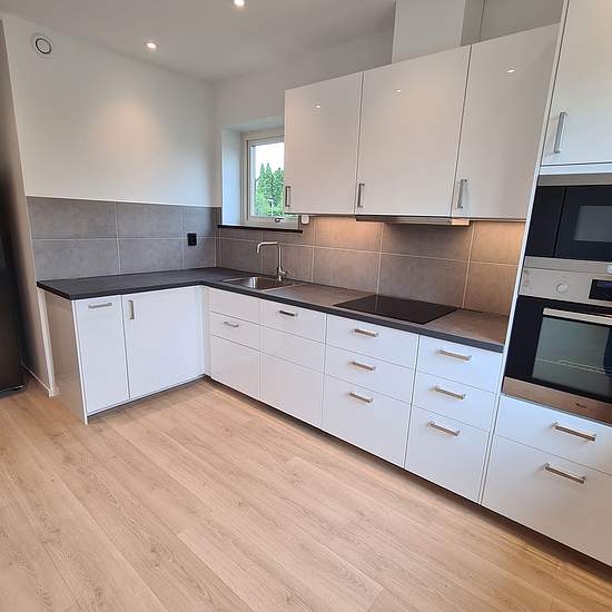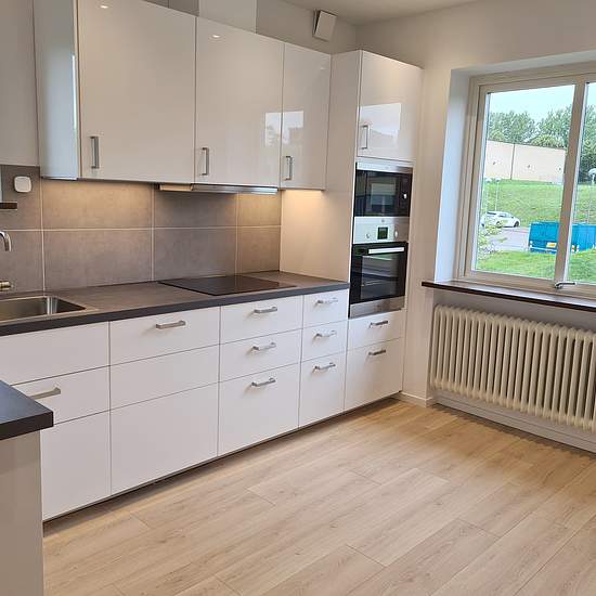 Newly renovated, well-laid-out apartment with three rooms and a kitchen for rent centrally in Kävlinge. The apartment is on the second floor (no elevator) in a villa with access to a large garden and space to park one car. The apartment is 78 sqm and has its own balcony off the living room. A laundry room is located in the basement and is shared with other tenants. Warm rent including broadband (fiber) per month. Rented for 2 years with the possibility of extension. Can also be rented for a shorter period. Service fee for the tenant: 643