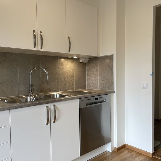Completely renovated, bright and pleasant 3-room apartment. Available for rent from July 1, 2026. Throughout parquet flooring and white-painted walls. Modern kitchen with white cabinet doors as well as dishwasher and microwave. Fully tiled bathroom with shower, towel holder, underfloor heating, washing machine, and dryer. A nice glazed balcony with space for both table and chairs. Laundry room is located at the short end of the high-rise buildings and an environmental station is available in the yard. Storage in the basement. Rent refers to ...