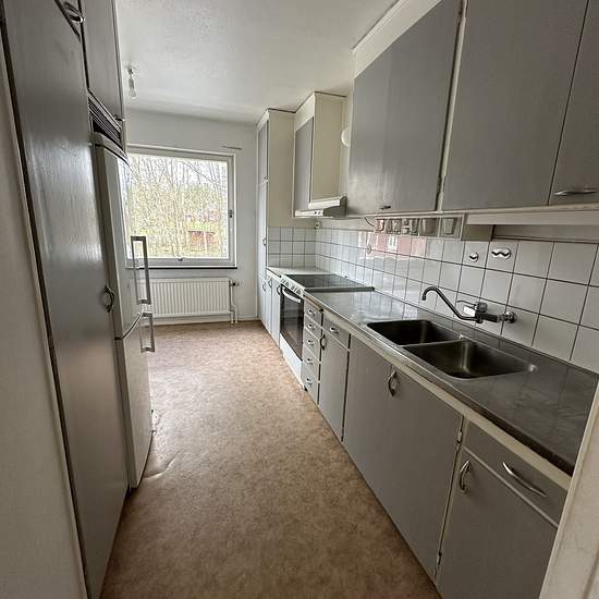 Apartment with three rooms, a hall, a kitchen and a bathroom. Possibility to install a dishwasher and a washing machine. Fiber is installed in the apartment.