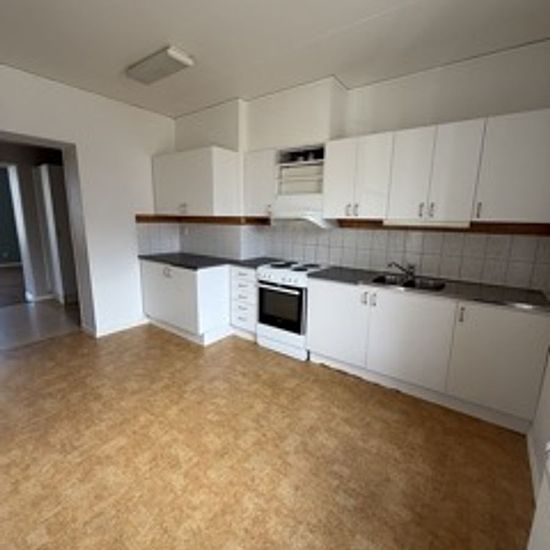 Spacious three-room apartment at Fabriksgatan 2. The property with preserved older charm is located next to Järnvägsparken, just a stone's throw from both the city center and the travel center. The apartment has large paned windows in three directions, generous countertop space in the kitchen, and a bathtub in the bathroom. Fiber optic internet is available!
