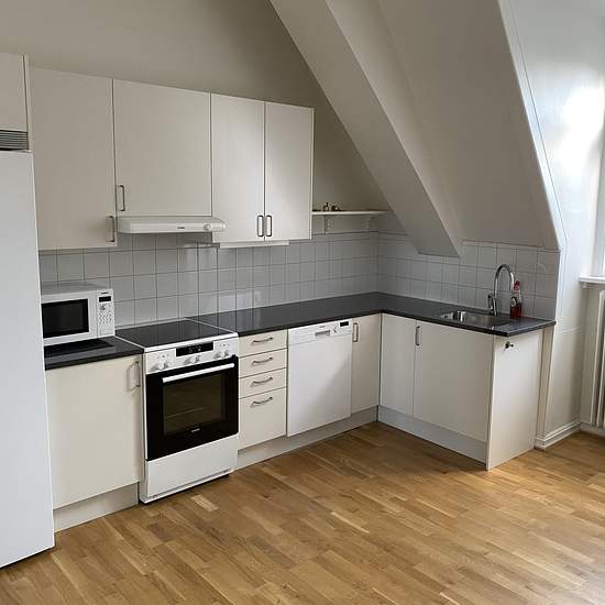 Now available is a super-nice, large and spacious three-room apartment in central Landskrona. A full 124 sqm with an incredible amount of natural light. The apartment is located on the top floor of the building and both a dishwasher, washing machine and tumble dryer are installed in the apartment. The bathroom was renovated previously: gray floor tiles and white wall tiles were installed and the shower doors are glass. There is also a guest WC, which has likewise been renovated with tiled floor and walls. The kitchen is bright with white cab...