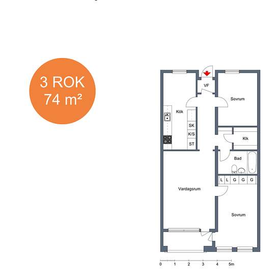 - 74 m²
