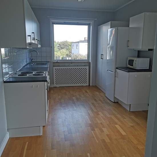 3-room apartment in Långås. Second floor with a balcony and a French balcony Parking Close to bus stop, convenience store, school, and preschool Rent (including heating) Service fee for tenant: 456