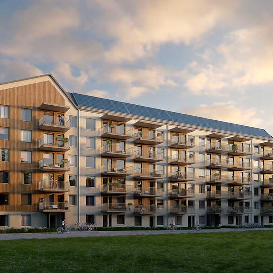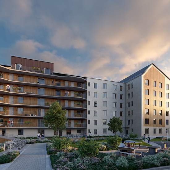 Bäcken, as the rental property is called, was built in 2022 and has 52 apartments ranging from 2- to 4-room units. There is a mix of layouts. Some apartments have access via an entrance balcony, with a small forecourt outside the private entrance. A sightline from one side to the other gives a townhouse-like feel. Other apartments have the kitchen and living room fully integrated, while some have the kitchen more clearly defined. The apartments range from efficient mini two-room units to generous four-room apartments with light from three si...