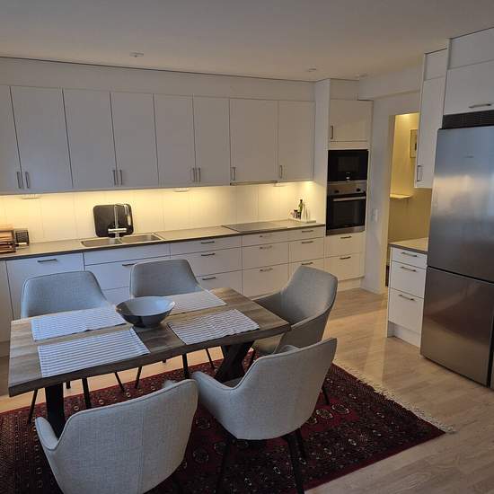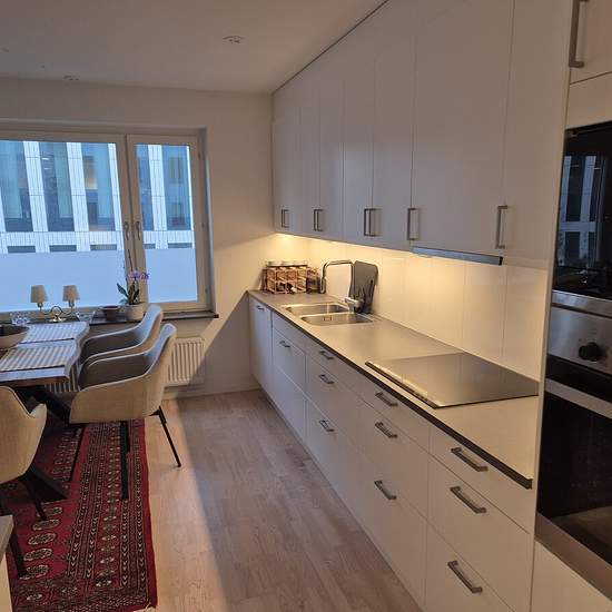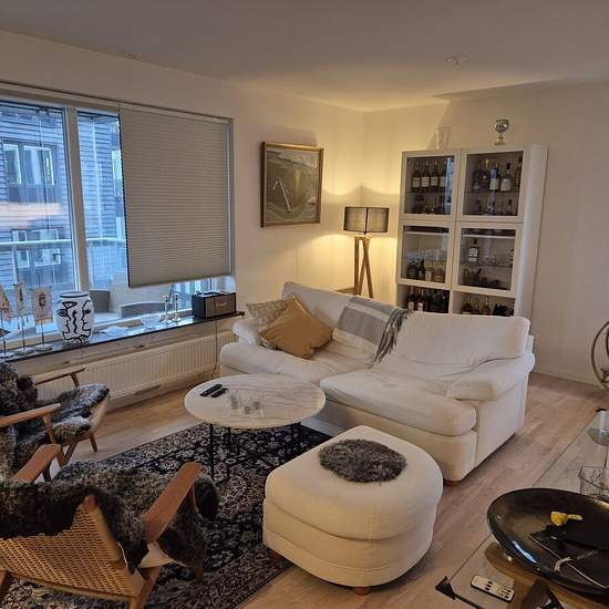 Very nice apartment on the 4th floor in a well-managed association! Open floor plan (kitchen, living room and balcony). Two generously sized bedrooms suitable for a family with children, a couple, or two students. Good storage space with new "Elfa" fittings in both the master bedroom and the entrance. Double fridge & freezer make it possible for two students to have separate fridge/freezer space. The bathroom is well planned with shower doors and both a washing machine and a tumble dryer of top quality. On the balcony there is a well-suited ...