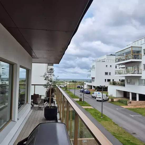 Description Furnished apartment with sea view Well-planned and bright apartment with an open floor plan and fantastic sea view from the entire shared area. The generous corner balcony of about 40 m² offers both morning and afternoon sun, creating a pleasant environment for relaxation after the workday. The apartment is fully furnished and equipped for long-term living. It accommodates two bedrooms with beds sized 140 cm and 180 cm. Two spacious bathrooms exist, of which one is en suite to the master bedroom with both shower and bathtub – per...