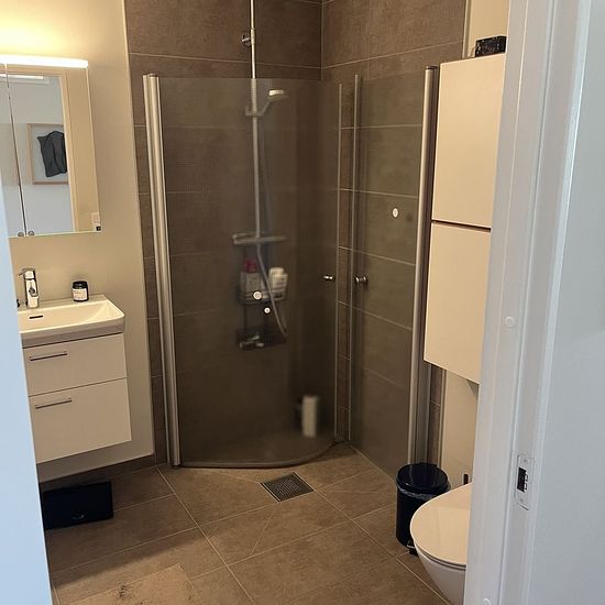 Possible to rent without a deposit through Samtrygg. Monthly cost: 20,000 kr. ________________________________________________________________ The quickest way to book a viewing is by following this link to Samtrygg: Here you will also find more pictures and more information. ________________________________________________________________ The apartment is a newly renovated and bright 115 sqm home with three rooms and 2 bathrooms, located in a quiet and pleasant area. Located on the 4th floor. Access to a private garage space with a char...