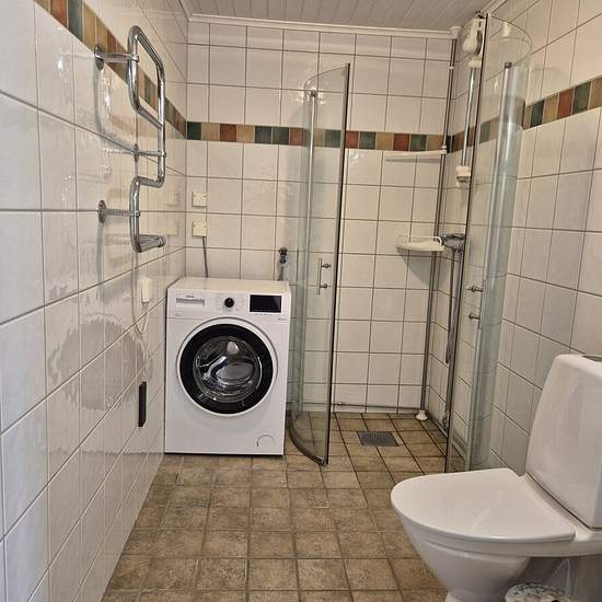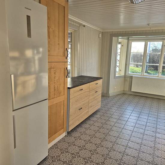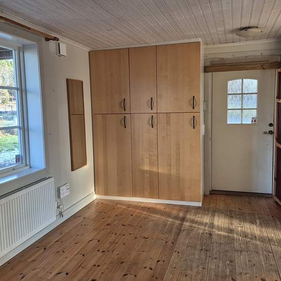The residence is on a farm in a multi-family house, on the gable facing east with a lake view. The lake can be seen from the kitchen. One large room and one smaller room, as well as a room directly adjacent to the entrance. A large bathroom with a washing machine. A large covered terrace of about 25 m2 and its own lawn. Shared parking space with the 3 other households on the farm. Access to apples and fishing in Lake Åsten. Rich wildlife in the surroundings. Large paddocks around the houses, loose housing with stalls for horses. A small hous...