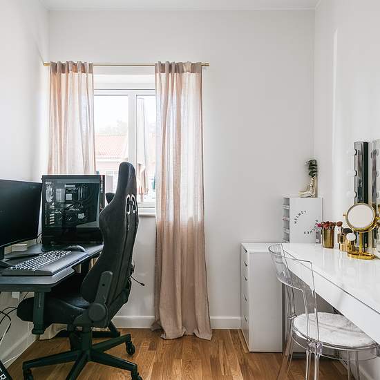 3 rooms and a kitchen on the ground floor – modern semi-detached house with the feel of a detached home Well-planned semi-detached house from 2022 with high standards and underfloor heating throughout. The home features high ceilings, white-painted walls and parquet flooring in the bedrooms and living room, creating a bright and airy feel. The bathroom has wall and floor tiles. The kitchen is equipped with a dishwasher and a built-in microwave, and the home also includes a washing machine and tumble dryer. Here you live in a quiet and secu...