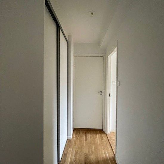 About the apartment The apartment is renovated and features parquet flooring and white-painted walls. Otherwise, the apartment has a bright and airy atmosphere that contributes to a pleasant living environment. The bathroom is fully tiled and is equipped with shower glass walls, washing machine, and dryer. The kitchen has a dishwasher, built-in microwave, and plenty of space for a dining area. The apartment is located on the 2nd floor out of 3, there is no elevator. The area The apartment is located close to Markaryd's center where you can ...