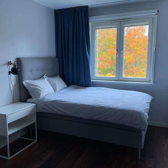 About the apartment: Bright and well-laid-out 3-room apartment of 74 m², located on the second floor (elevator available). The apartment consists of two bedrooms, a separate kitchen, a spacious living room and a bathroom with a bathtub. From the balcony you have a view of green surroundings with large trees and an open vista, creating a sense of privacy and calm. The apartment is rented fully furnished, but there is the option to bring your own furniture if desired. Internet is included in the rent. Electricity cost is additional (approxim...