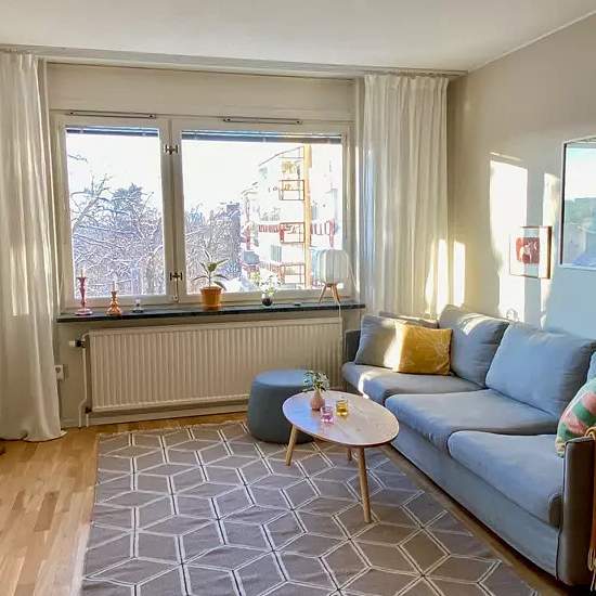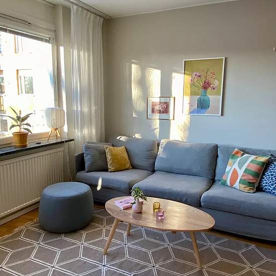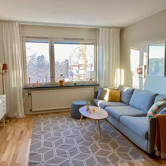 Beskrivning Ljus möblerad 3:a med balkong och sjöutsikt i Sickla Välplanerad och ljus 3-rumslägenhet om 71 m² belägen på en höjd i attraktiva Sickla, med balkong och vacker utsikt över Sickla sjö. Här bor du endast 3 minuters promenad från badbryggor, och på andra sidan sjön ligger Nackareservatet med fina strövområden och naturupplevelser året runt. Lägenheten hyrs ut möblerad och består av två sovrum, vardagsrum samt ett nyrenoverat kök. Det finns gott om garderobsutrymmen. Det större sovrummet har en säng på 160 cm och det mindre en säng ...