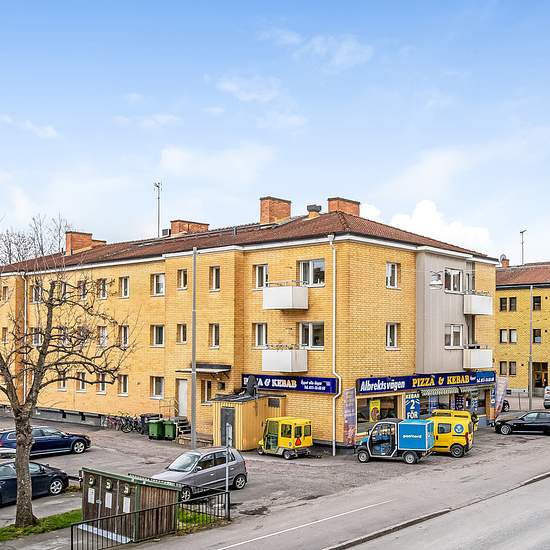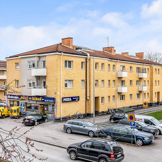 En trevlig gavel-lägenhet på söder med balkong. Lägenheten genomgår just nu en renovering och beräknas vara klar 1/11. OBS! Bilderna är från en liknande lägenhet i huset med samma planlösning. I hyran ingår värme & vatten samt digital-tv via Telia. Öppen fiber. Parkeringsplats finns att hyra på gården i mån av plats.