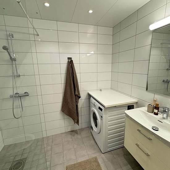 Välplanerad trea med och öppen social planlösning. Lägenheten är utrustad med tvättmaskin och diskmaskin . Badrummet är kaklat med spotlights i taket. Bra förvaring i förrådet som är inne i lägenheten. Tillkommande kostnader för varm och kallvatten, samt hushållsel, vilket mäts och debiteras efter faktiskt förbrukning sk IMD. Hyresgäst tecknar eget avtal för bredband och hemförsäkring. Huset är anslutet till Telias Öppna Fibernät. TV-paket Start från Telia ingår i hyran. Det finns 18 st markparkeringar till huset. Kostnad för att hyra parker...