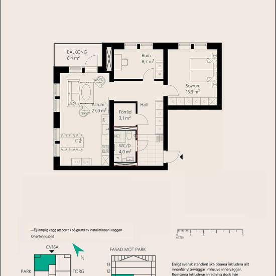 Welcome to a nice 3-room apartment with kitchen of approximately 79 sqm at Centrumvägen 16A in Nykvarn. The apartment is on the first floor and a parking space can be rented in the adjacent garage. All dwellings are modernly furnished with beautiful single-strip oak parquet, a quartz countertop and fully tiled bathrooms with underfloor heating. All kitchens also include quality appliances such as an induction hob and a convection oven. Here you can move into an attractive, sustainable and smart home with mobile access. New Nykvarn Centrum i...