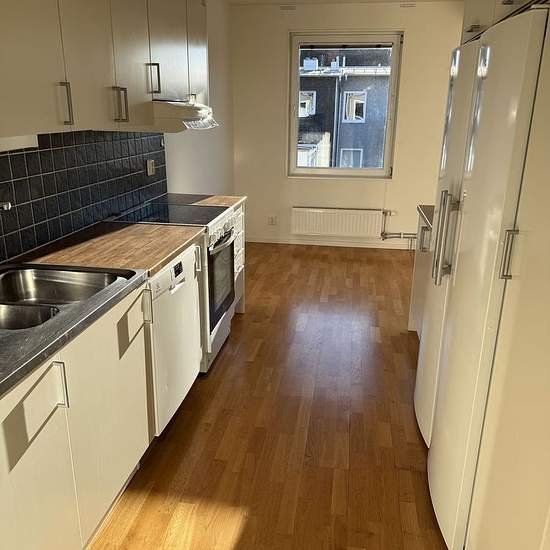 Apartment 3 rooms and kitchen (63.5 sqm) on the west side. 3-room apartment with kitchen for rent at Grundläggaregatan 7. The apartment is bright and well-planned. It is located on the second floor with a balcony. The apartment has continuous oak parquet floors, white-painted walls and a tiled bathroom with a shower. Shared laundry room. Kitchen - Nice kitchen with good appliance comfort. White cabinet doors, laminate countertop and dark tiles above the work surfaces. The appliances consist of: stove/oven, fridge/freezer and dishwasher. F...