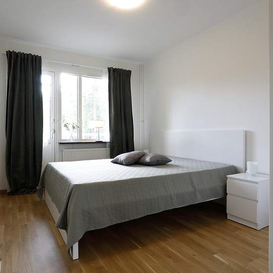 Now there is a chance to rent a centrally located, completely renovated three-room apartment with kitchen and balcony! A through apartment with windows facing two directions. Hall: Oak parquet flooring and light-painted walls. Spacious walk-in closet. Bathroom: Fully tiled with tile flooring, underfloor heating and a heated towel rail. Washbasin with vanity, shower with glass walls. Kitchen: The kitchen is bright and has space for a large dining table. Oak parquet flooring and light-painted walls. All kitchen carcasses have been replaced....