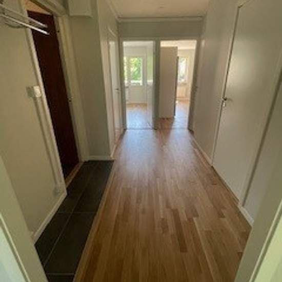 Now there's an opportunity to rent a centrally located, fully renovated three-room apartment with kitchen and balcony in the first building on Länsmansängen! A through apartment with windows on two sides. Hall: Oak parquet flooring and light-painted walls. Spacious walk-in closet. Bathroom: Fully tiled walls and floors with underfloor heating and a heated towel rail. Washbasin with vanity unit, shower with glass walls. Washing machine and tumble dryer. Kitchen: The kitchen is bright and has space for a large dining table. Oak parquet floori...
