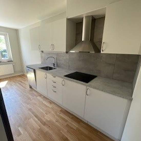 Now there is another centrally located, fully renovated three-room apartment with a kitchen and balcony at Länsmansängen! A through apartment with windows on two sides. Hall: Oak parquet flooring and light-painted walls. Spacious walk-in closet. Bathroom: Fully tiled with tiled flooring, underfloor heating and a heated towel rail. Washbasin with vanity unit, shower with glass walls. Washing machine and tumble dryer. Kitchen: The kitchen is bright and has space for a large dining table. Oak parquet flooring and light-painted walls. All cab...
