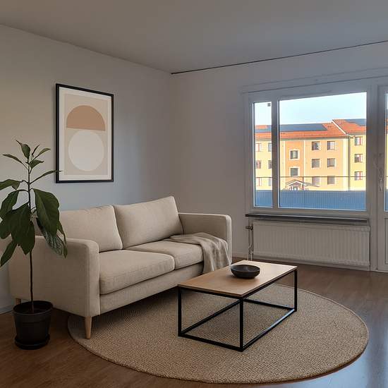 Three-room apartment with balcony Welcome to this pleasant three-room (3 rooms and a kitchen) apartment that has been freshly painted. Here you live in a bright, well-planned apartment with new windows and a balcony door, which not only gives a fresh impression but also lets in plenty of daylight. The living room has plenty of space for both a seating area and a dining area, and from the room you can step out onto the balcony—perfect for morning coffee or a relaxing moment in the evening sun. The kitchen is spacious and offers good storage...