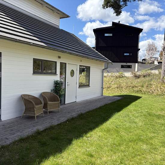 Del i villa uthyres ca 50 kvm i markplan med två sovrum, stort badrum, kombinerat vardagsrum med kök. Vardagsrum med stora generösa fönster från takt till golv. Kök utrustat med kyl/frys, micro, häll med två plattor och ugn, diskmaskin. Ovanskåp samt underskåp. Stort badrum med kombinerad tvättmaskin och tumlare. Två ljusa sovrum med goda förvaringsutrymmen, ett av sovrummen vetter ut mot terras i västerläge. I hall högskåp med förvaringsutrymmen och städ. Klinker i hela lägenheten med golvvärme. Tillgång till trädgård. Serviceavgift ...