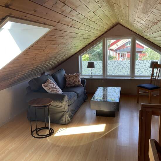 Rental unit in our villa, completely separate. With outdoor patio. Two floors with a walk-in closet. Bedroom, living room, kitchen, bathroom. Parking space available. Nature right at your doorstep, close to lake and sea. Very quiet residential area in Saltsjö-Boo. Close to public transport, about 30 minutes by bus to Slussen. No pets. Rented ONLY to a couple or a single person. NO CHILDREN FAMILIES!! Service fee for tenant: 569.