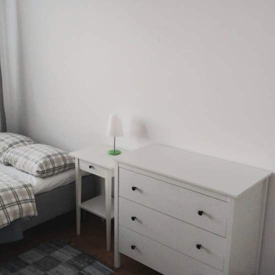 Nicely furnished room with its own refrigerator and freezer. For rent to one person. Preferably a woman. Located in Fisksätra and available immediately. Close to the sea and beautiful nature, close to the gym and the grocery store. Close to the bus and the Saltsjöbanan commuter rail. Before signing the contract, some form of proof of employment or studies must be shown. Proof of monthly income. The apartment already has two women and a small friendly dog. Shared kitchen and bathroom. There is a laundry room near the building. Service fe...