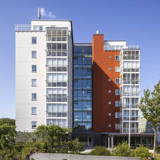 Bostad Welcome to Joneberg's sheltered housing for people over 65. There is the possibility to view the property before any contract signing. Joneberg 5 is located at Rektorsgatan 7 in Simrishamn and is a 9‑storey building painted in lovely white with orange details. All apartments have a high basic standard, including parquet floors, a dishwasher, fully tiled bathrooms and a balcony or patio. The apartments are well thought-out with space‑efficient and smart layouts. The open plan between the living room and kitchen invites social interact...