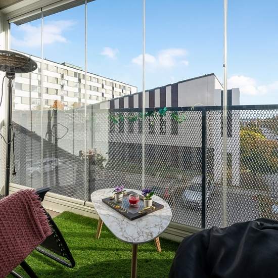 Välkommen till ett hem utöver det vanliga – en ljus och välplanerad gavel 3:a på attraktiva Kungssätravägen 18, med två balkonger ca 33 kvm (varav den mindre är inglasad) som förlänger boendets sociala ytor och erbjuder härlig livskvalitet året runt. Här bor du högt upp med generösa utomhusytor och en planlösning som både känns luftig och funktionell. Redan i entréhallen möts du av en välkomnande atmosfär med plats för avhängning. Vidare in öppnar bostaden upp sig mot ett ljust och stilrent kök med vita luckor, svart kakel och full maskinell...