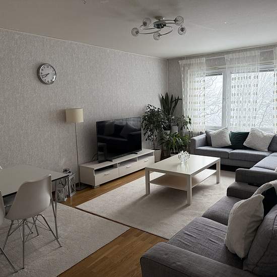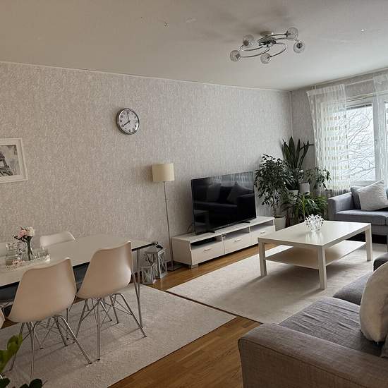 Spacious 3-room apartment in peaceful Sätra – close to nature, swimming and public transport I am renting out my bright, well-laid-out 3-room apartment of 80 sqm in a quiet and safe area in Sätra. The apartment is very close to the athletics hall (approx. 50 metres) and is surrounded by greenery. It's about an 8-minute walk to the subway and roughly 14 minutes to the city by public transport. Sätrabadet is also within walking distance and is very popular during the summer. Perfect accommodation for anyone who wants a quiet area with close...