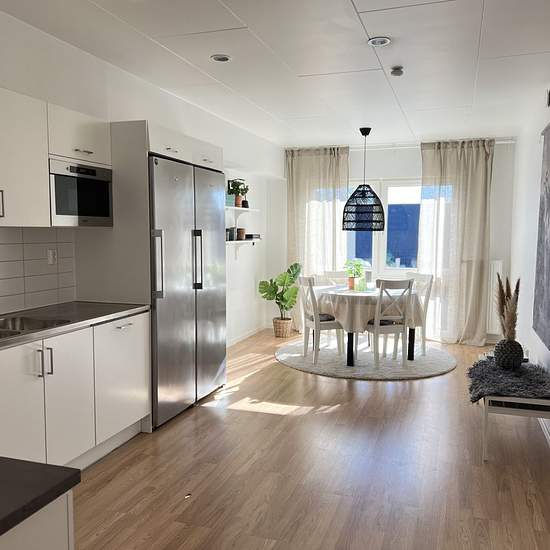 Special offer for new leases! If you sign a rental agreement you will receive a rent discount of 1,000 SEK per month for one year. Cozy three-room apartment with an open-plan kitchen and living room, generous bedrooms with good storage and a lovely recessed balcony. High-standard kitchen with stainless steel appliances, built-in microwave and integrated dishwasher. On Läkaregatan in Skillingaryd you live in a quiet area close to schools, the swimming pool, sports hall and the town centre. There is parking adjacent to the buildings and the ...