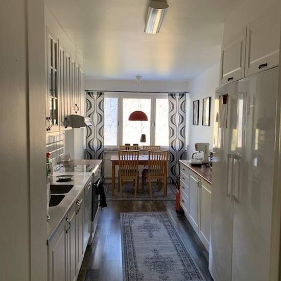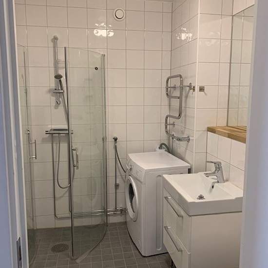 Mysig lägenhet med 2 sovrum och båda med garderober. Helkaklat badrum med dusch och förberett för tvättmaskin. Lantligt vitt kök med vitrinskåp och diskmaskin. Balkong från vardagsrum med utsikt mot skogen. I hyran ingår 1 Mbit internet och TV paket lagom från Telia. Parkeringsplats finns att hyra invid fastigheten.