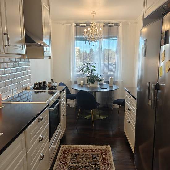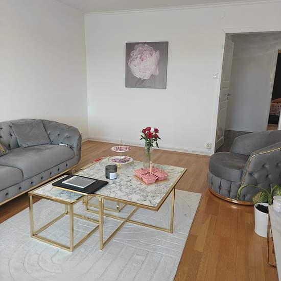 About the apartment Are you looking for a cozy home? This 72 m² apartment is waiting for you! It is only a short walk from the town center and has a bus stop right outside. A 10-minute walk to Södertälje Centrum. It is located next to AstraZeneca and Tom Tits. The apartment is partially furnished with two bedrooms, a living room and a large hallway. The kitchen has a dining table with four chairs. For storage there is a large storage room. There is also a washing machine, tumble dryer and dishwasher in the apartment, and a shared laundry roo...