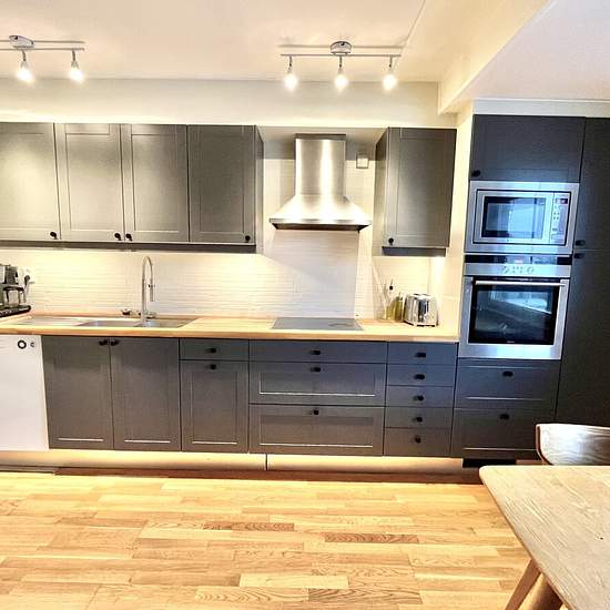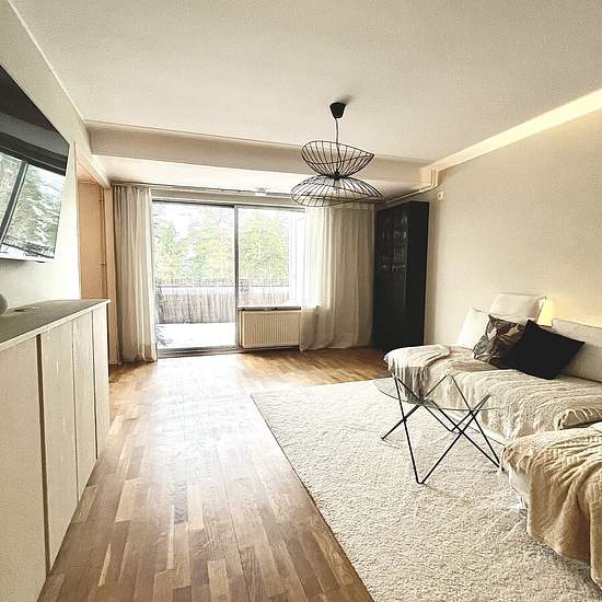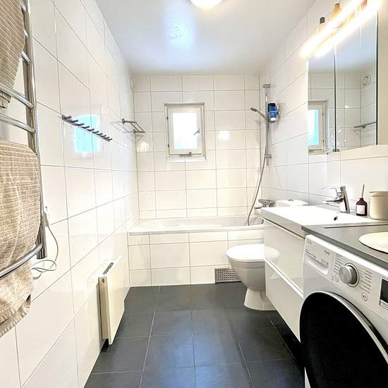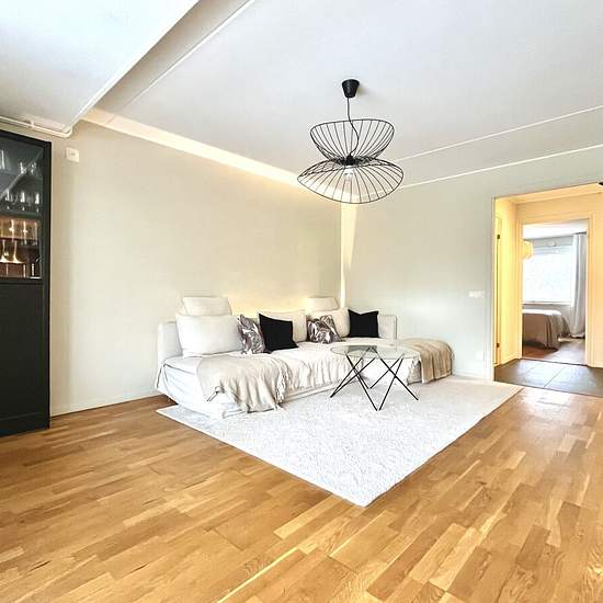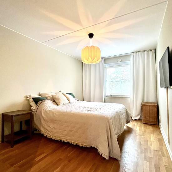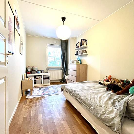 You are welcomed into a large entrance hall with dark slate floors and plenty of storage. Oak parquet runs throughout the apartment, which has two large, easy-to-furnish bedrooms and a fully tiled bathroom. There is a terrace with room for both a large dining table and lounge furniture. The location is sunny and protected from prying eyes. You live in one of Sjöberg’s best locations, with Edsviken, a bathing spot and pleasant walking paths as your neighbors. Good bus connections are within walking distance, and by car you have easy access t...