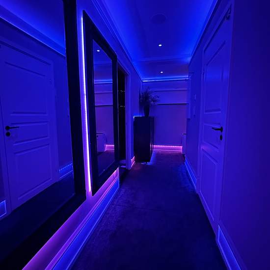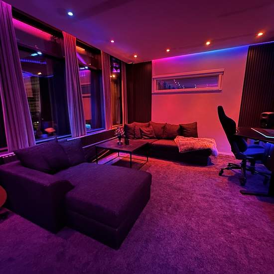 Hypermodern centrally located new construction of 66 sqm with a 21 sqm glazed balcony. One minute's walk to Sollentuna commuter train station/bus terminal/center. The apartment, a 3-room, is located on the 4th floor. Heated garage and elevator available. Flexible exclusive furnishing arranged by agreement. Hall/corridor, bathroom, bedroom, guest room, living room, kitchen and balcony have installed ceiling speakers with voice control, sensors, motorized curtains and Philips Hue lighting. 4K laser projector, motorized 110" screen and king-s...