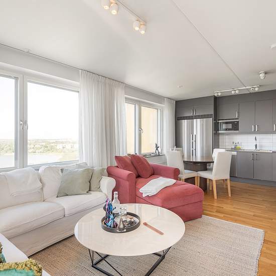 Nyproducerad 3:a, 20e våningen med sjöutsikt Nyproduktion 2019, färdig/tillträde från och med oktober 2019. Omöblerad och obebodd ljus lägenhet med 3 rok på 70 kvm + en inglasad balkong på 9 kvm. Lägenheten är belägen på 20:e våningen med sjöutsikt, samt fina tillval såsom takdusch,uppgraderade vitvaror & kök mm. Öppen planlösning mellan vardagsrum och kök samt två sovrum. Helkaklat badrum med dusch, tvättmaskin och torktumlare. Förutom rymliga garderober i sovrummen och hallen finns ett rum (walk in closet) för mer förvaring. Tillgång t...