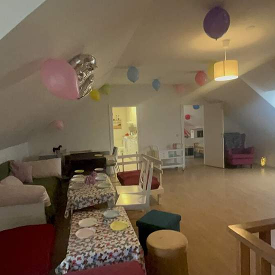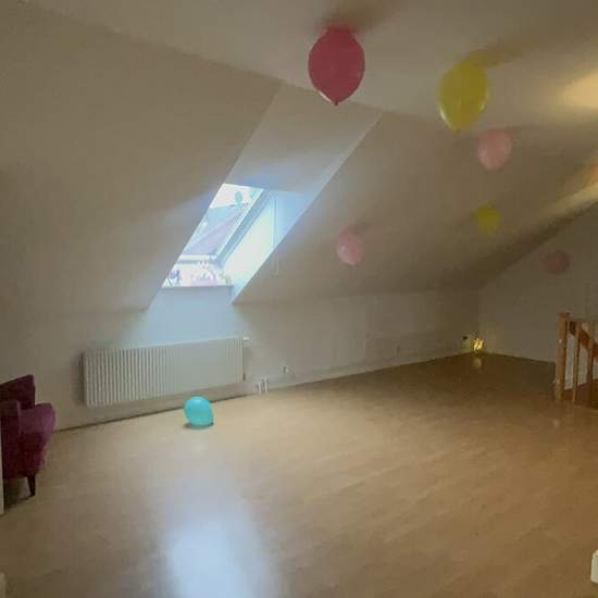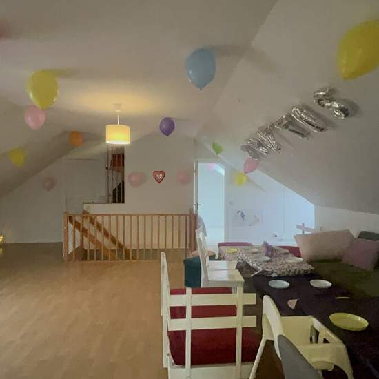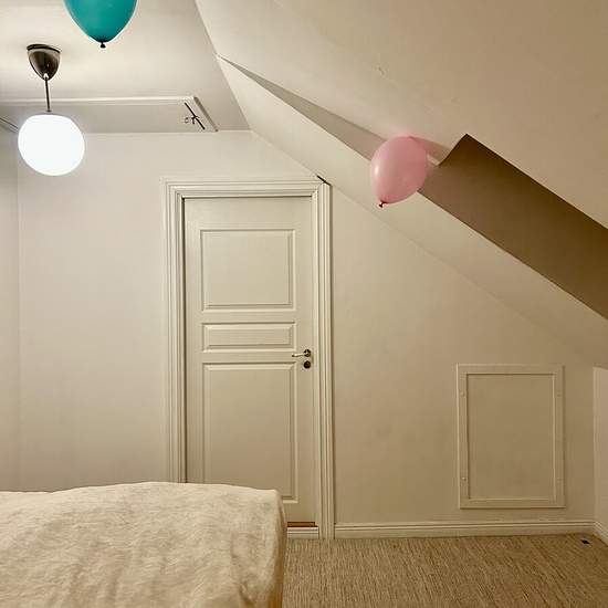 Large attic apartment with sloping ceilings, so the apartment is close to 105 sqm including all floor areas. We have just had a party so no other pictures are available. The apartment is rented fully furnished, with kitchen equipment for 1 year or more, on an ongoing basis. The living room is approx. 50 sqm and the two bedrooms 10 sqm each. Kitchen approx. 16 sqm Bathroom approx. 8 sqm Rented to 1 person or a small family, max 3. We will be traveling which is why we are renting it out. Service fee for the tenant: 391