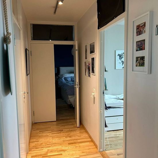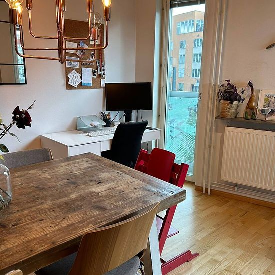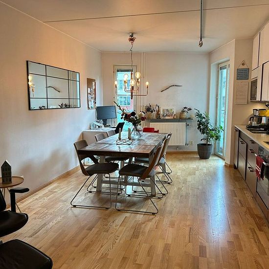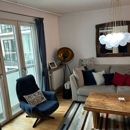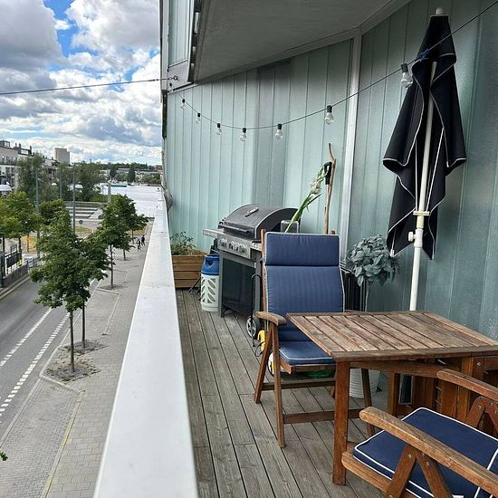 A very nice fully furnished studio apartment located in the lovely area of Stockholm called Hammarby Sjöstad. A city within a city, surrounded by water where you find; shops, restaurants, cafés, gyms and public transport all within walking distance. And of course several places to take a dip. A small walk or an even faster ride with bikes that you may borrow if you want. The flat has two balconies and sun from early morning to the evening. Service fee for tenant: 1279