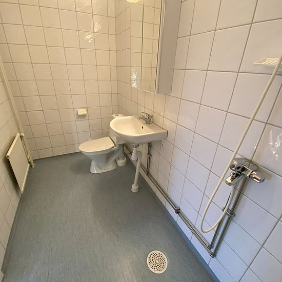 About the apartment The apartment is in an older style but in nice and fresh condition. The apartment has a pleasant layout and with its 79 square meters there is plenty of space for both comfort and functionality. The practical kitchen offers ample storage behind white cabinet doors and space for a dining area. The bathroom has white tiled walls, light blue plastic flooring, and a shower. Storage is available in the form of wardrobes. The apartment is located on the first floor and has a pleasant balcony. Elevator available. The area The...