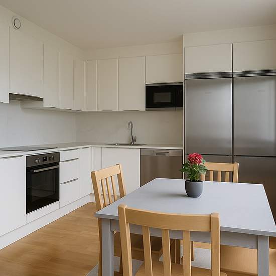 Renovated 3-room apartment with glazed balcony facing south. Description Welcome to this tastefully renovated home of 78 sqm located on the third floor. You are greeted by a bright and cohesive interior where every detail is considered to create a modern and pleasant living environment. This apartment was completely renovated in 2021 and offers a comfortable and stylish home ready to move into. The floors feature uniform parquet throughout the apartment and tiles at the entrance, providing both elegance and practical function. Walls, ceiling...
