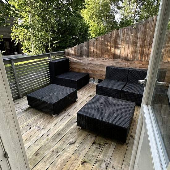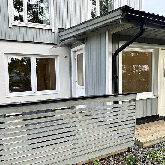 Bright and fully equipped apartment in a villa with a private entrance and patio. Rent SEK 13,500/month. Well-planned and fully equipped apartment on the ground floor of a villa (not a basement). The apartment has a private entrance from the side of the house and access to a patio and garden. Apartment • Two bedrooms with space for 160 cm beds • Combined kitchen and living room • Fully tiled bathroom • Underfloor heating • Large wardrobe in the hallway and smaller wardrobes in the bedrooms (not visible in the photos) • Private patio ...
